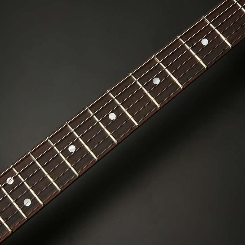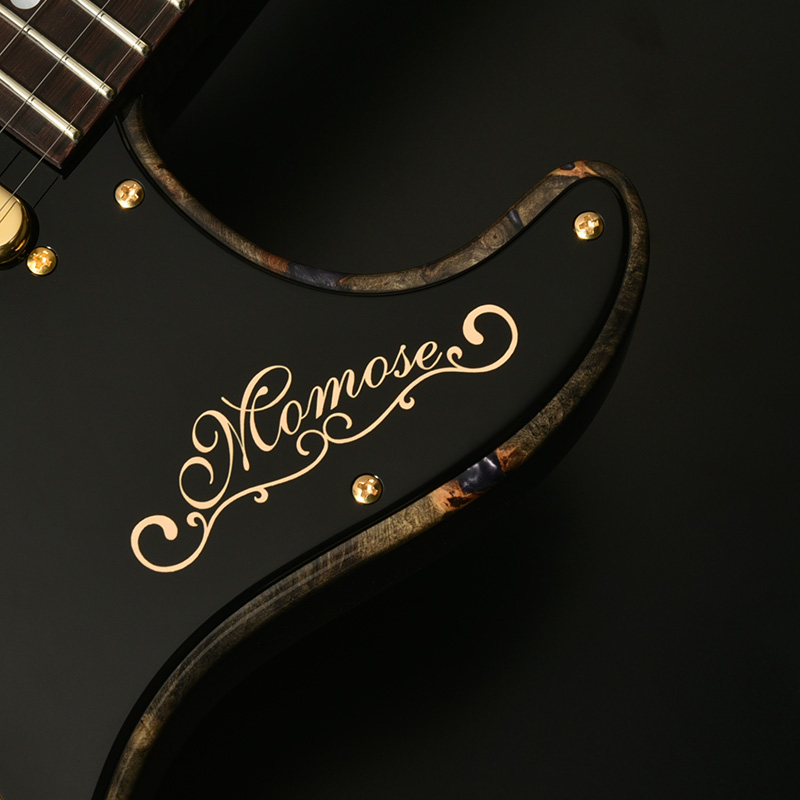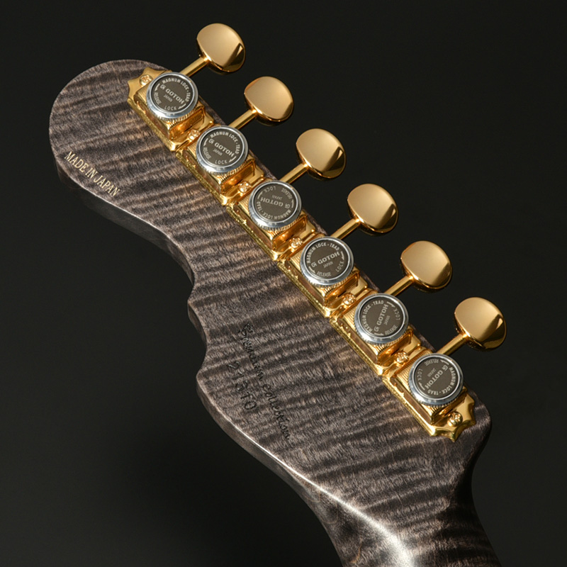 近年のその需要に対して希少性を増している、マダガスカルローズウッドを指板に採用。レギュラー製品では採用を終了しており、本数限定製作のショーモデルだからこそ実現した仕様となります。ネック材のフレイムメイプルは、ヘッドストックの先端までストライプの入ったハイグレードな個体を厳選。芸術的なルックスをぜひその目でお確かめください。
