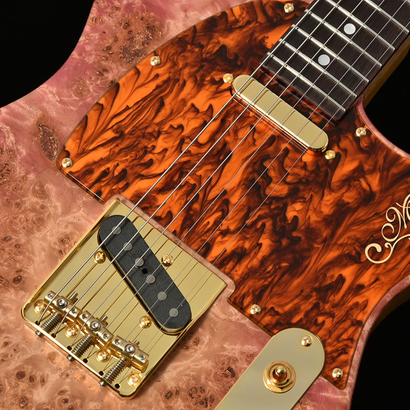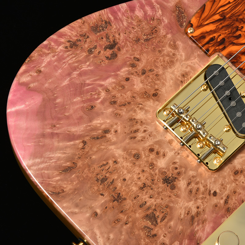 トップ材には複雑な杢目が特徴のバールポプラを使用。バール杢を感じる、杢目の個性を生かしたカラーに仕上げられました。ポプラは一般的にボディ材として多く使用されていますが、バール杢のよく出た個体は特に希少性が高く、加工には高い技術を要します。