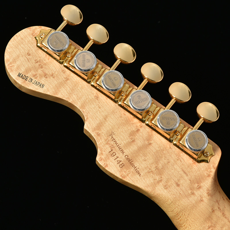コリーナウッドはバランスの取れた重量・硬質さで人気の高い材の一つですが、近年その流通量は減少傾向に。もはや説明不要とも言える、ハイミッドにかけて抜けの良いサウンドを響かせます。本モデルではボディ材として贅沢にコリーナ1Pを採用し、トップ材とのコントラストが美しい1本です。