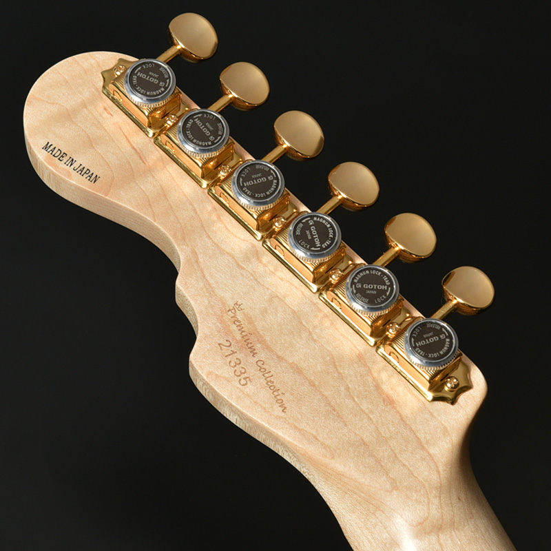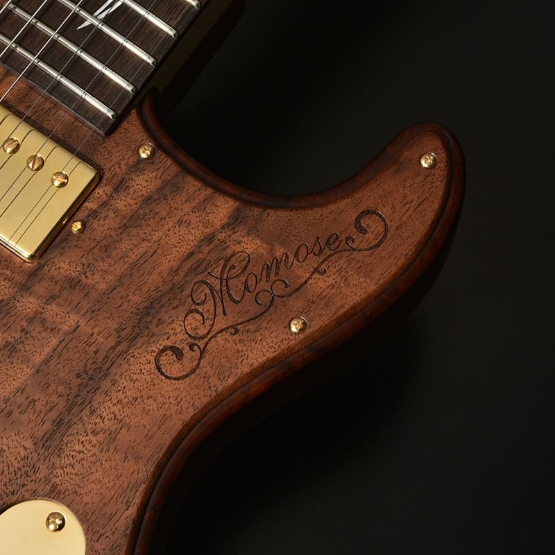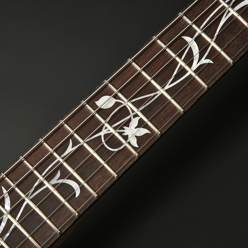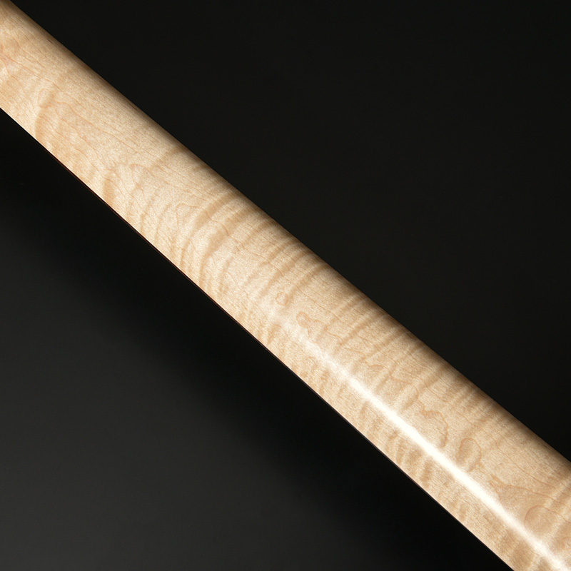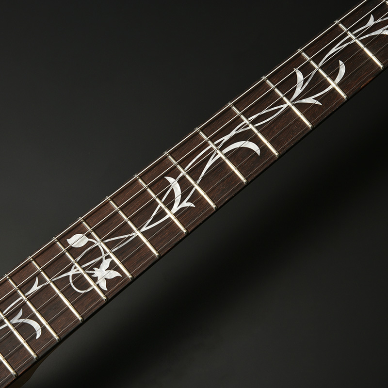 ツリーオブライフのインレイが施された指板には、近年のその需要に対して希少性を増しているマダガスカルローズウッドを採用。ネックには飛鳥工場の木材ストックより厳選されたハイグレードのフレイムメイプルを使用し、ゴージャスなルックスがプレイヤーの手元を華やかに彩ります。