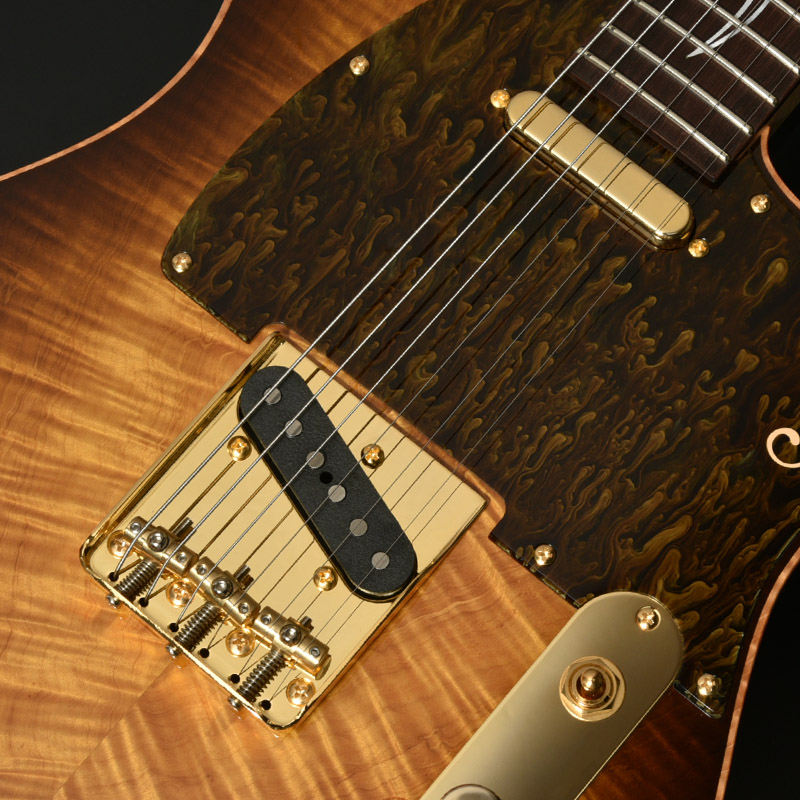 トチは東日本を中心に広く分布し、銘木と評される高級和材の一つです。杢目の出た美しい木肌は塗装映えも素晴らしく、カラーリングによって様々な表情を見せてくれます。本体カラーとマッチしたアクリルピックガードにより、統一感のあるデザインを生み出しました。