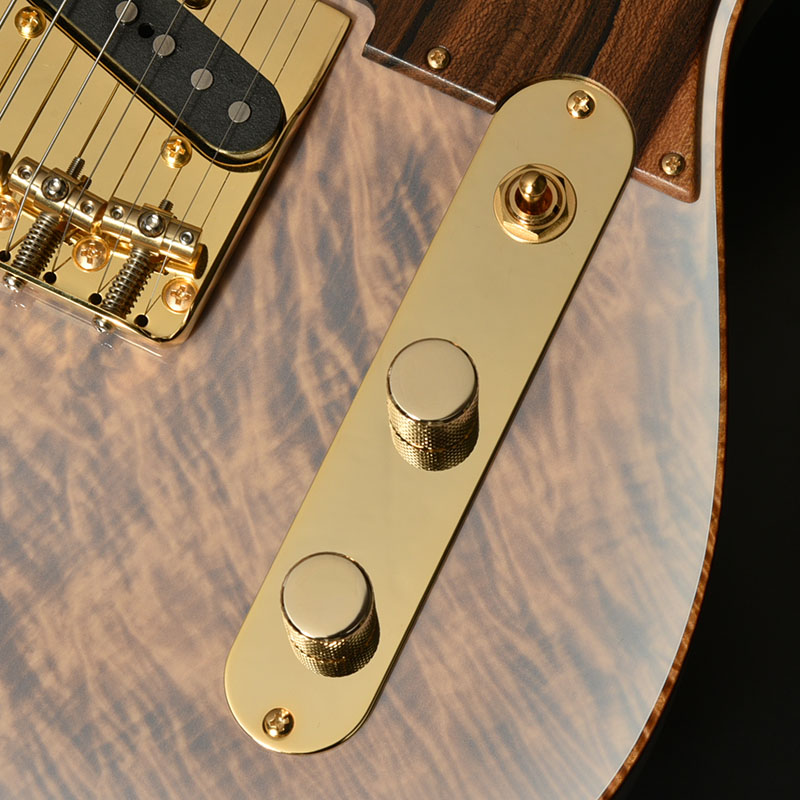 リアピックアップには同社の”TL CLONE ’52″ピックアップを元に、ディバイザーが自社製品への組み込みのため独自に仕様変更をオーダーしたオリジナルモデルATQ60 Tele®︎をマウント。
