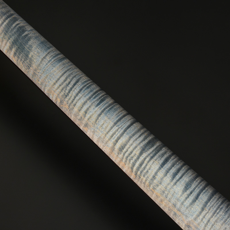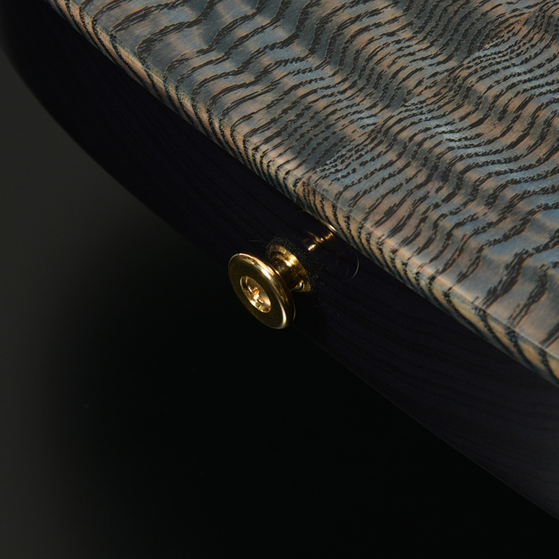 和材として知られる「タモ」の中でも、縦にひだ状の杢目を有す個体をキルトタモと称します。その独特の模様は着色されることでいっそう魅力を増し、インパクト抜群の個性的なルックスへと仕上がりました。