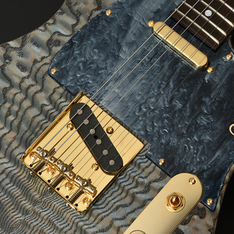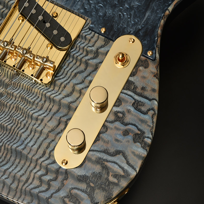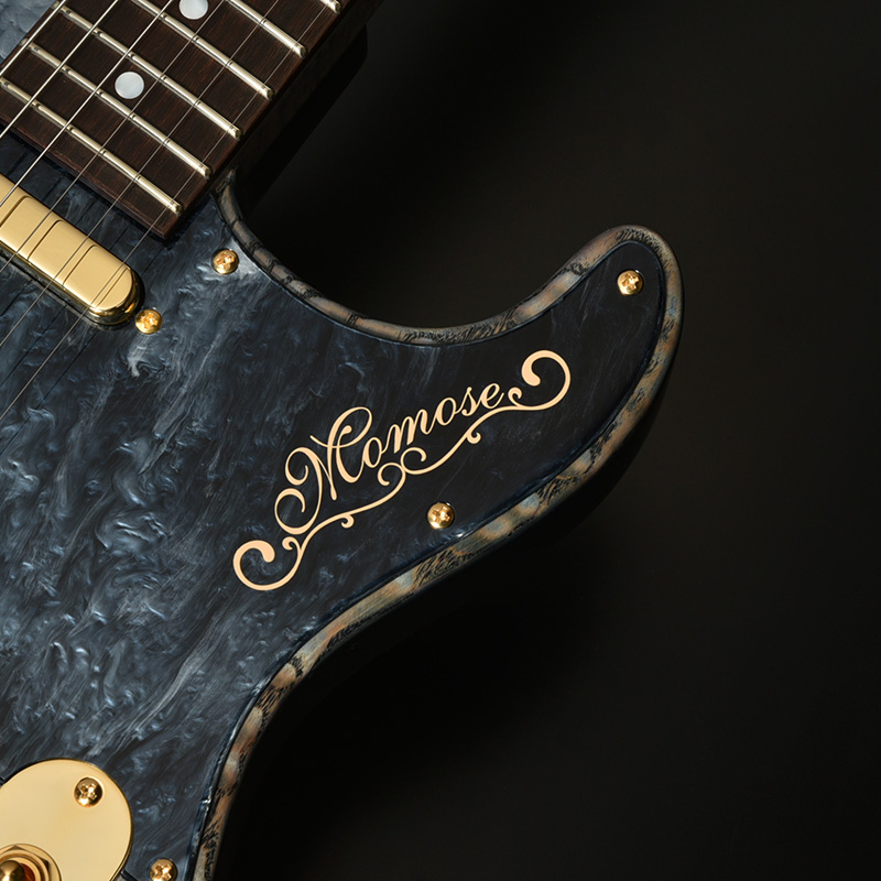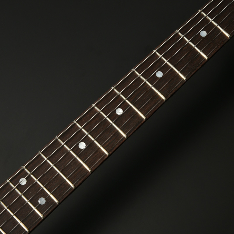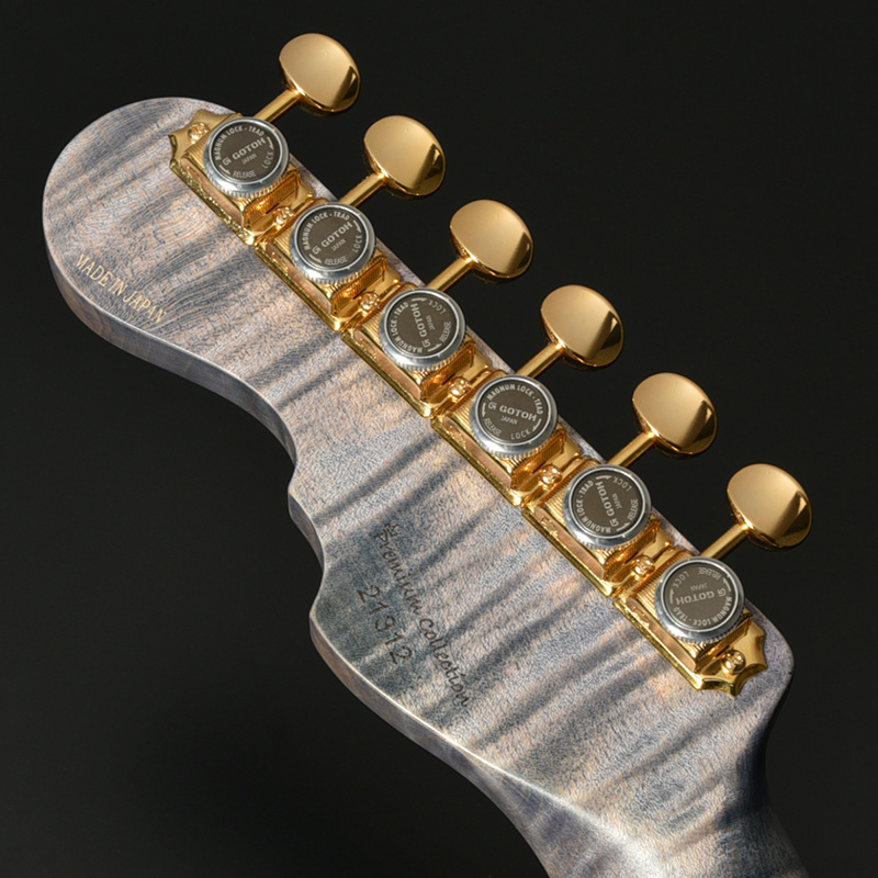近年のその需要に対して希少性を増している、マダガスカルローズウッドを指板に採用。レギュラー製品では採用を終了しており、本数限定製作のショーモデルだからこそ実現した仕様となります。柾目取りのネック材のフレイムメイプルは、ヘッドストックの先端までストライプの入ったハイグレードな個体を厳選。芸術的なルックスをぜひその目でお確かめください。