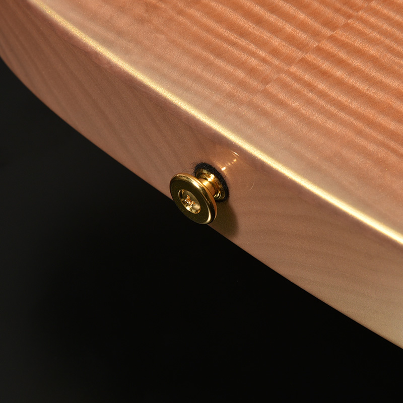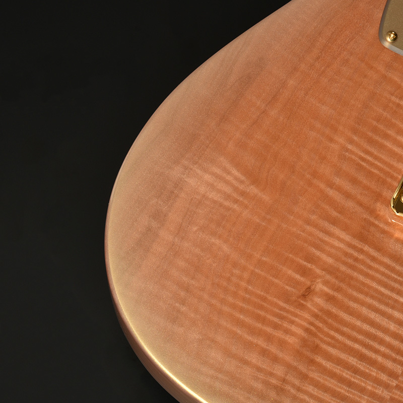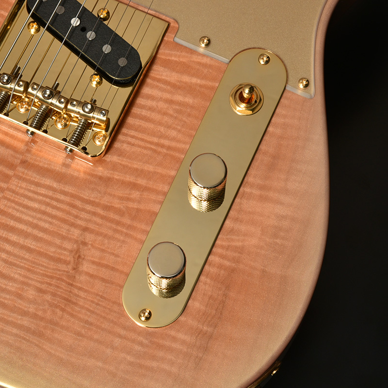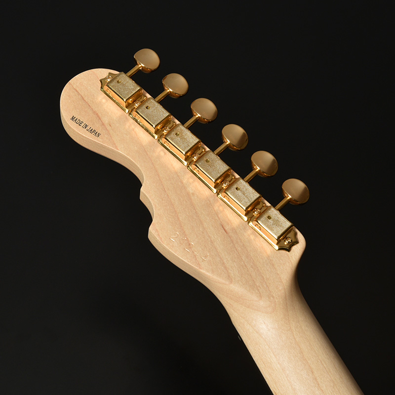 2025福岡ギターショーに、桜材をボディトップに採用した限定モデルが登場。硬質で密度の高い桜材は芯のある明瞭なサウンドを特徴とします。ボディ本体には定番のアルダー材を使用し、より実践的なサウンドを突き詰めています。