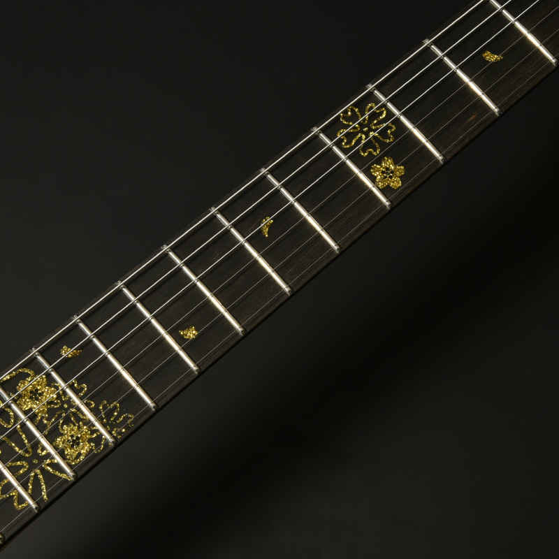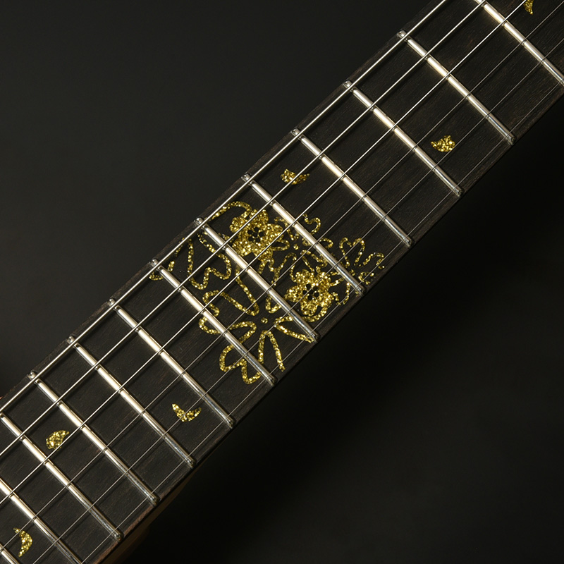 黒々とした高級感のあるルックスでおなじみのエボニー材を採用。定番のローズウッドなどに比べて重量があり、立ち上がりが早く輪郭のあるトーンと伸びやかなサスティーンを生み出します。
