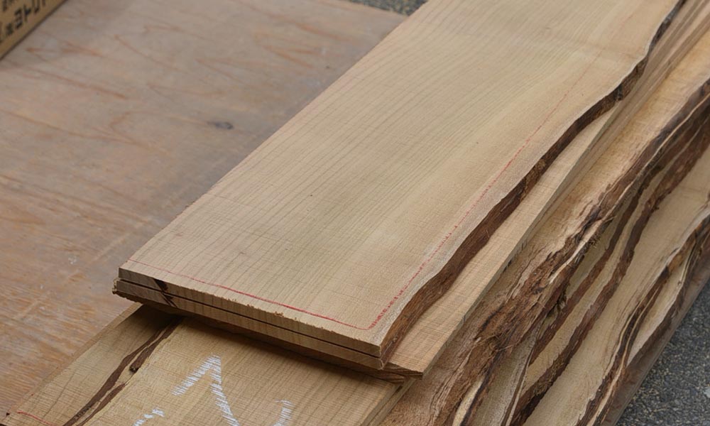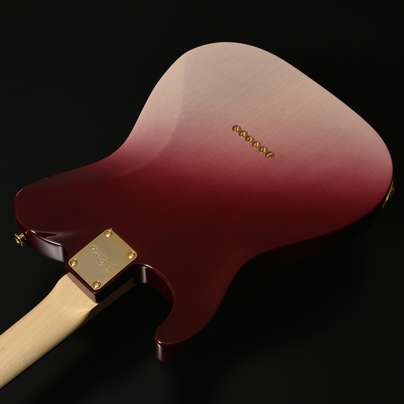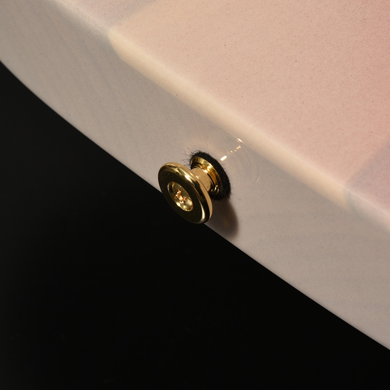 奈良県黒滝村産の「吉野千本桜」として知られる希少な桜材をボディトップに使用しています。採取地である吉野山は2004年に登録された世界遺産「紀伊山地の霊場と参詣道」を構成する地のひとつであり、日本屈指の桜の名所に数えられます。木肌の白く帯状になっている部分がボディ中央にくるよう組合せることで、より一層木目の美しさを際立たせています。