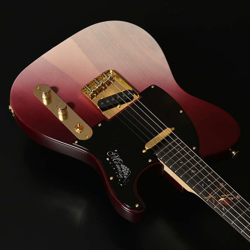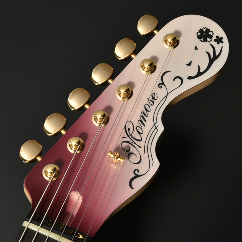 吉野山には約3万本もの桜が咲き誇ると言われています。谷から尾根にかけて広がるその様子をピックガードロゴと共に表現しました。
