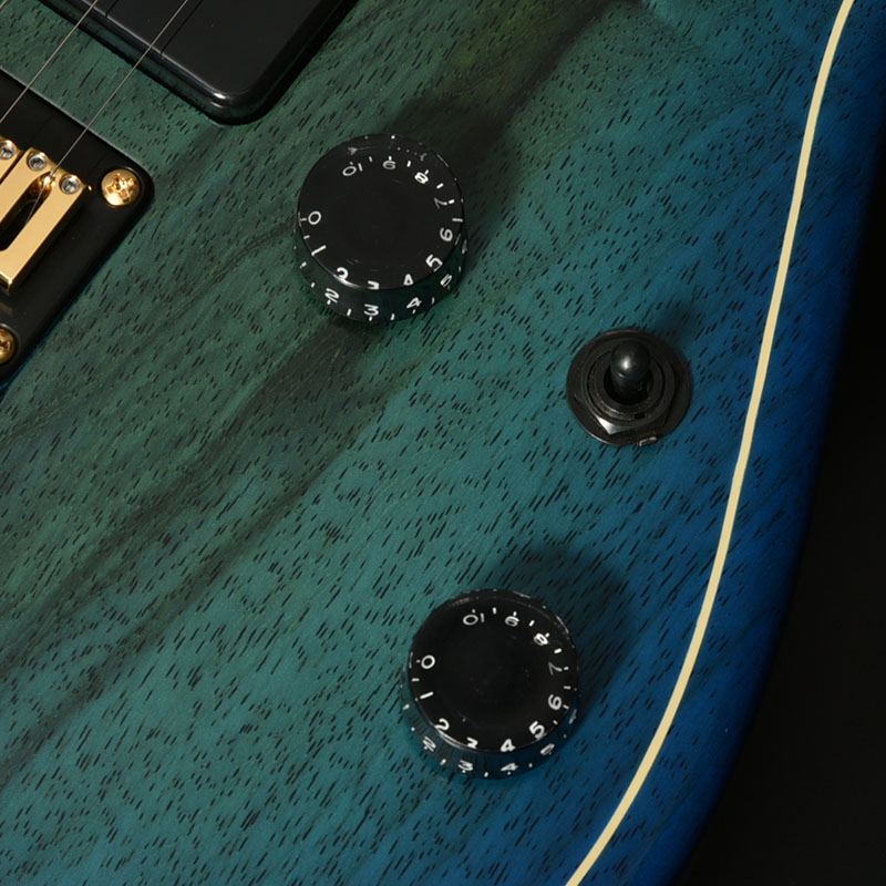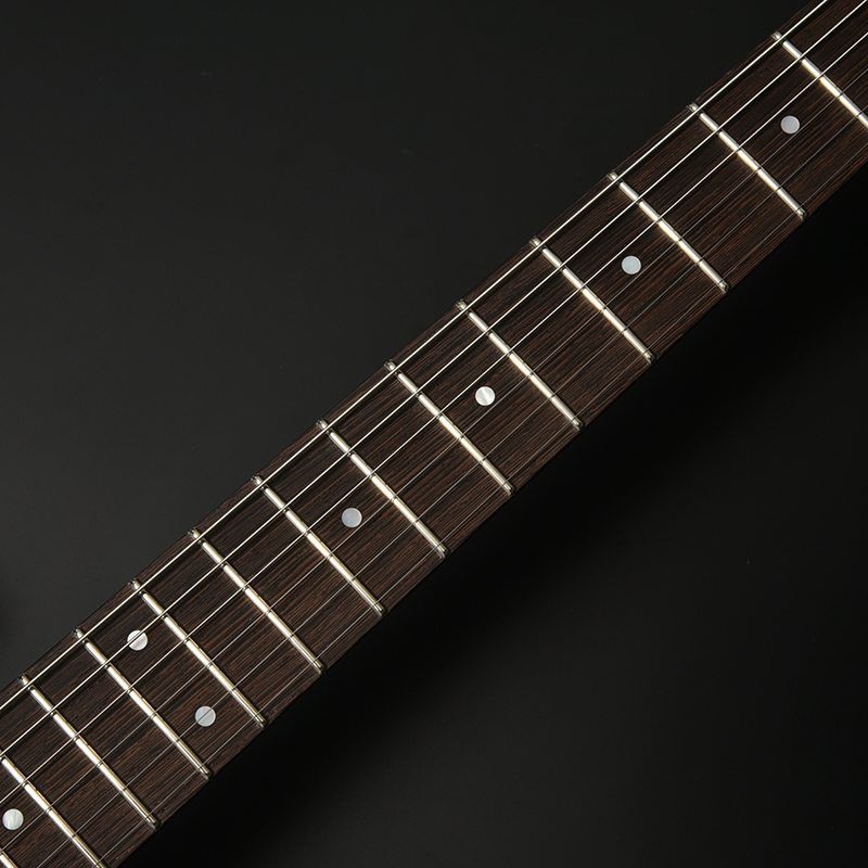 指板サイドのポジションマークには蓄光素材の「ルミンレイ」を採用しています。ステージで使用する際にも視認性が高く、プロの現場で活躍するミュージシャンからも支持を得ている仕様です。