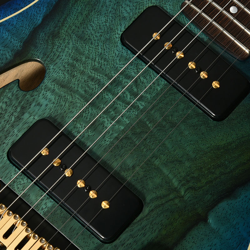 ROSETTA VESSELをより使いやすく、より自由な音色を実現するため新たに開発されたピックアップを搭載。「MIRAGE」と名付けられたこのピックアップは、ホロウボディの特性を最大限に発揮しつつ、ハウリングを起こさない絶妙なバランスを追求し、美しいクリーンサウンドを可能にしました。