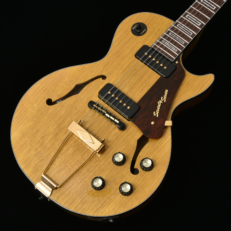 商談会限定モデルとして、コリーナウッドをボディとネックに採用したSTORKが完成!セットネックモデルで根強い人気を誇るコリーナ材ですが、近年その数は減少し、良質な個体は特に希少性が高いことで知られています。木材自体の美しさはもちろん、Seventy Sevenの高い組込精度によって完成させられたプレイアビリティにも注目です。