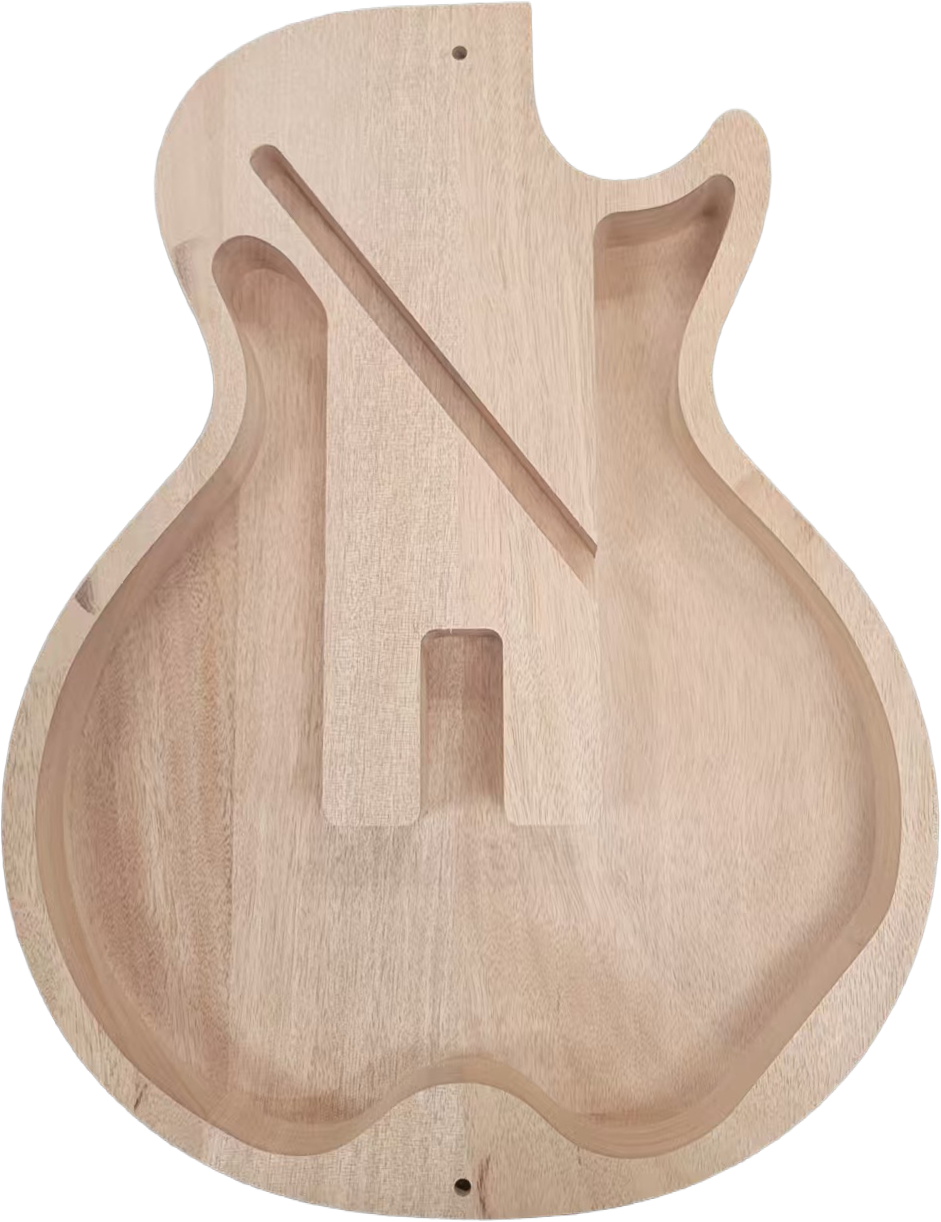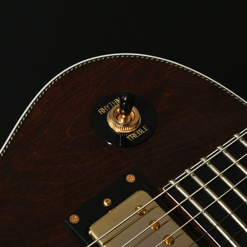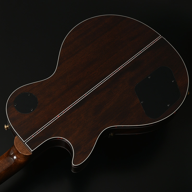 飛鳥工場製モデルの内部構造を踏襲し、大きく彫り込んだチャンバード構造を採用。センターブロックを残したセミホロウ構造でありながら、可能な限り広くくり抜く設計により、豊かな生鳴りと本体重量の軽量化を実現しています。
