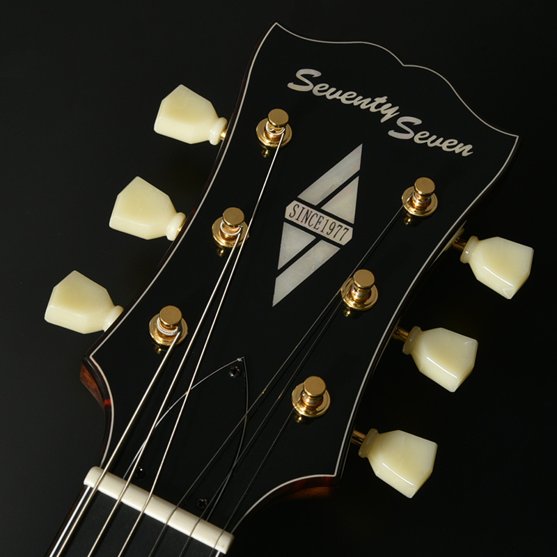 アルニコ2マグネットを採用したSeventySevenオリジナルピックアップ、 「SeventySeven AL2」を搭載。クリーントーンではきらびやかな鈴鳴り感を表現しつつも耳に痛くない暖かさを併せ持ち、ドライブをかけると歯切れの良いエッジの効いたクランチサウンドを出力します。プレイヤーの創造力を膨らませて豊かな演奏表現を生み出します。