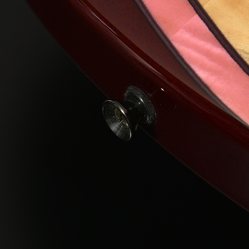 ボディトップの大半を占めるバックアイバール材には脈打つ大地を感じさせるような、迫力のある杢目を有する材を厳選。力強い外観がボディ全体に堂々たる風格を与えています。