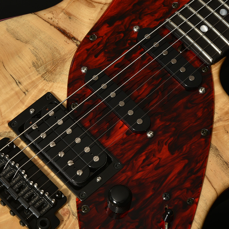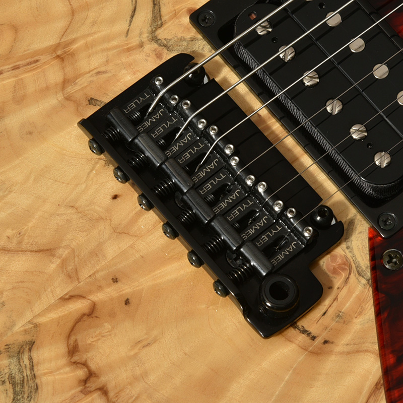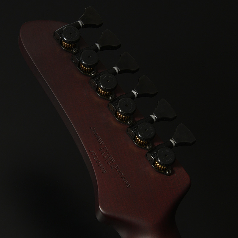 メイプルのネックは反りやねじれに強い「柾目(まさめ)」で製材されているだけでなく、サーモ加工を施すことでよりネックの剛性を高めることで安定感抜群の演奏性と末長くご愛用いただける仕様を実現。ネックグリップはJames Tyler氏の好んだグリップ形状を踏襲しています。