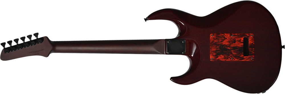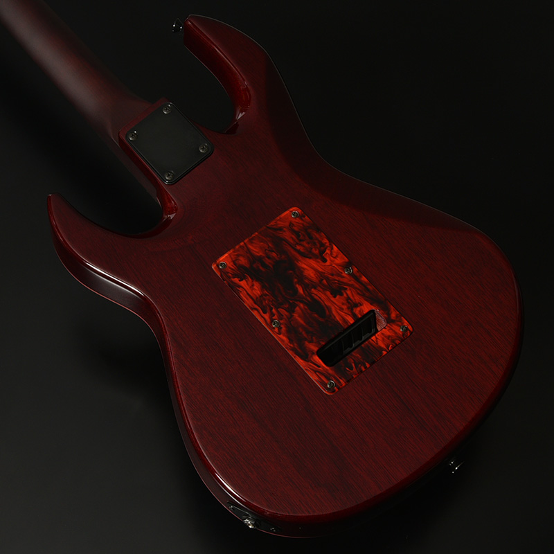 コンターは木材を切り替えて配置する三層構造に。トップの第1層にはバックアイバール、ボディ本体の第3層にはアフリカンマホガニーを採用。中間に位置する第2層には淡いカラーリングを施したフレイムメイプルを配し、重厚感の中にも遊び心を感じさせる仕上がりとなっています。