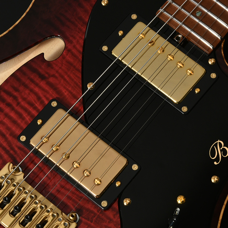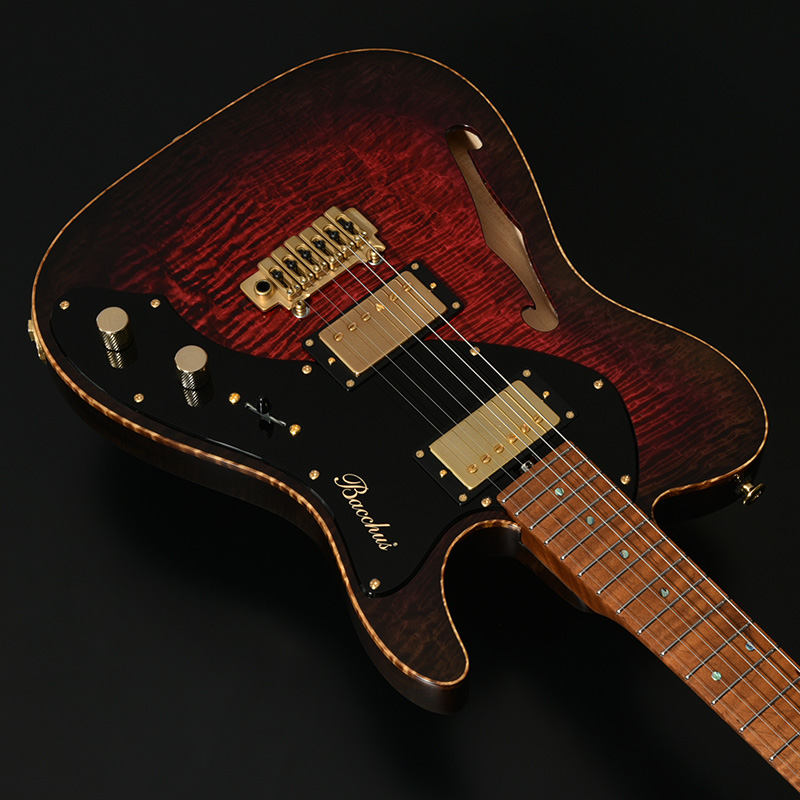 ピックアップにはBacchusオリジナルのハムバッカータイプ2基をマウント。コントロールに5wayセレクターを搭載することでハムバッカーの太く伸びやかなサウンドに加え、ハーフポジションではシングルコイル・トーンも出力可能です。現代のミュージックシーンに求められる幅広い音色を一台でカバーします。