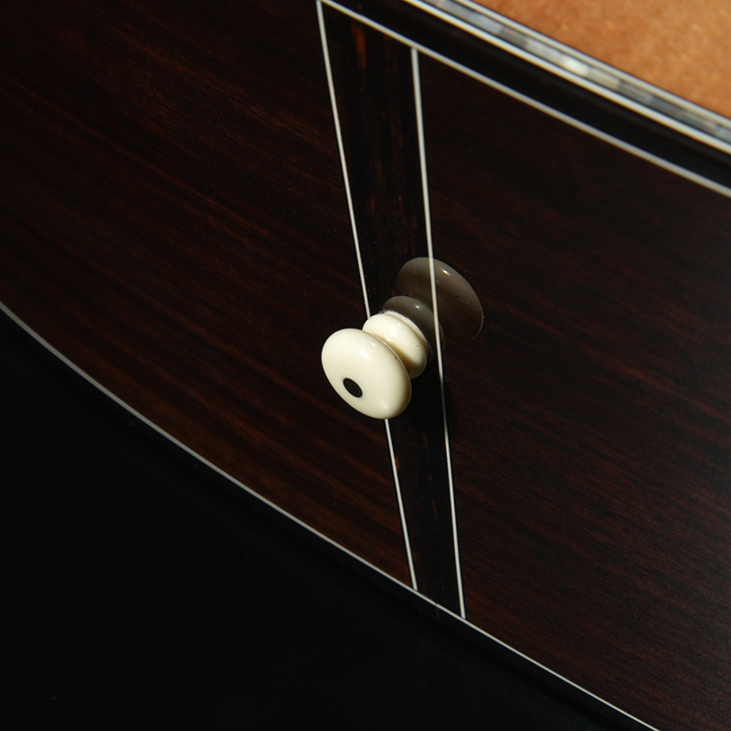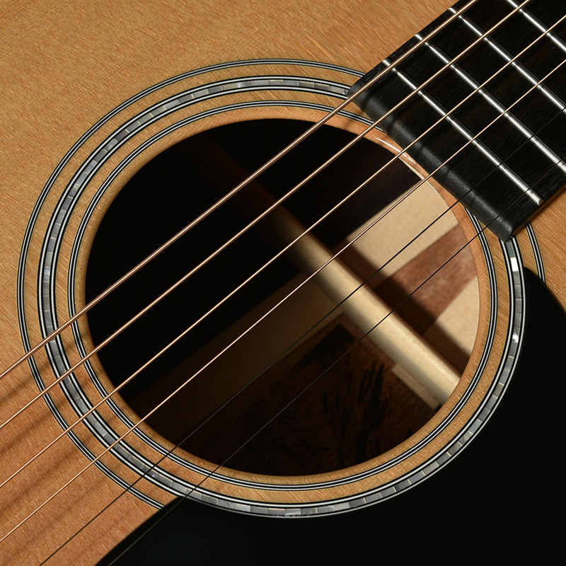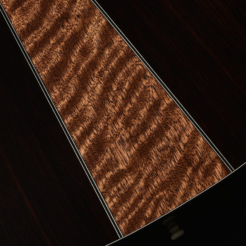 強烈な個性を放つその美しいルックスに加え、ボディバックセンターにマホガニーを配置することで、ローズウッドのサウンドにマホガニー特有の温かみのあるミドルレンジが重なり、本モデルの音をより高い次元へと引き上げます。