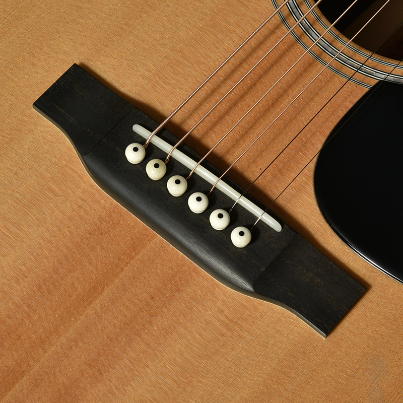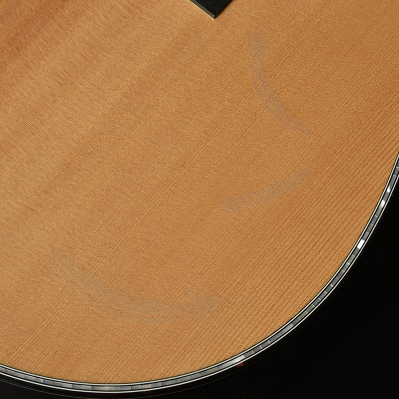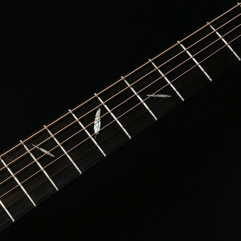 トップ材に使用された“80’s Sitka Spruce” は、40年以上にわたる天然乾燥を経ており、一般的なシトカ・スプルースと比べてサスティーンが長く、乾いた質感の中に心地よい高音を備えたトーンを生み出します。