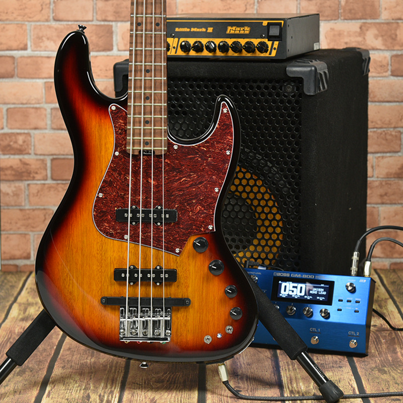 フルサイズのモデルよりもわずかに細身のディンキーシェイプのボディを採用した4弦エレキベースです。ボディ材にはナトーを採用し、楽器としてバランスの取れたサウンドとなっています。