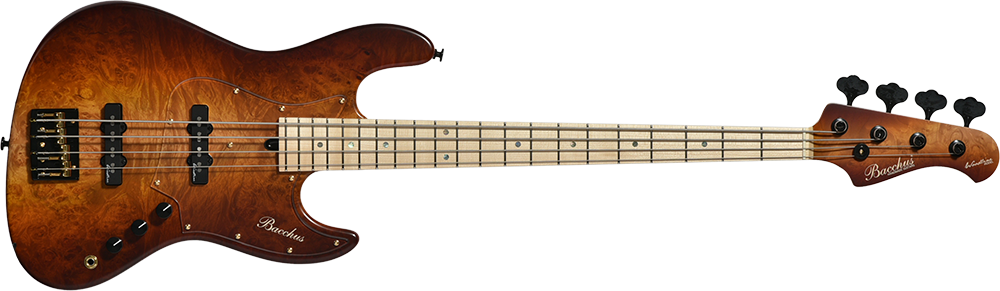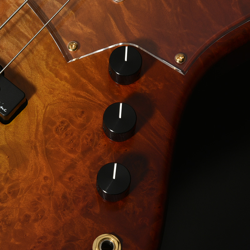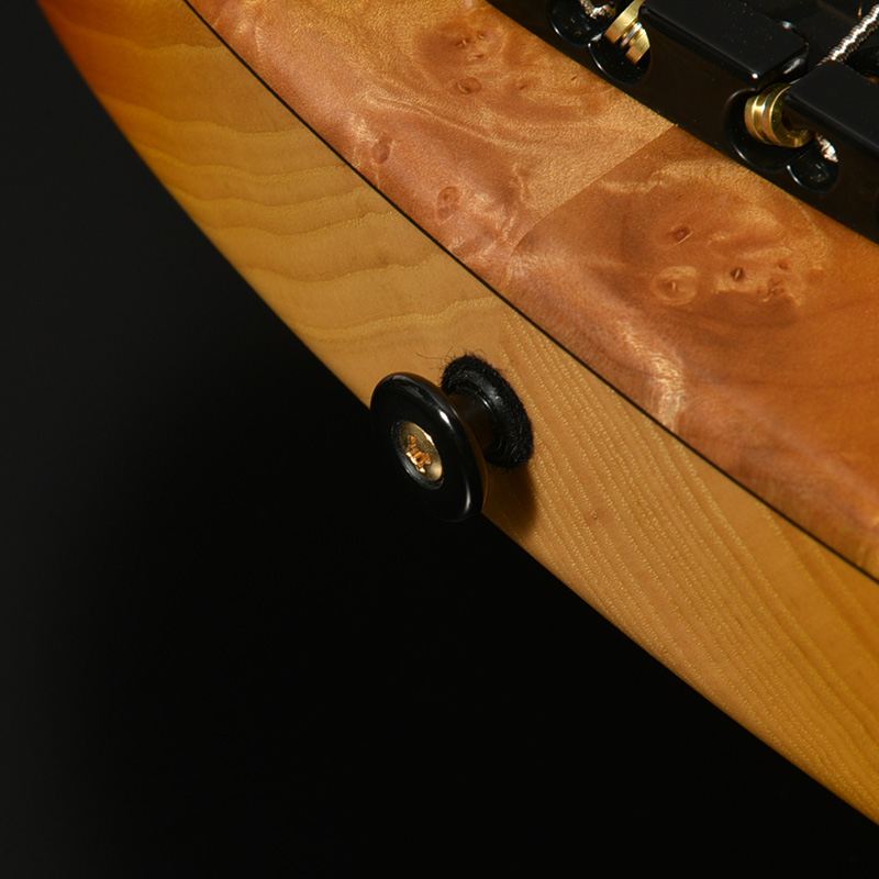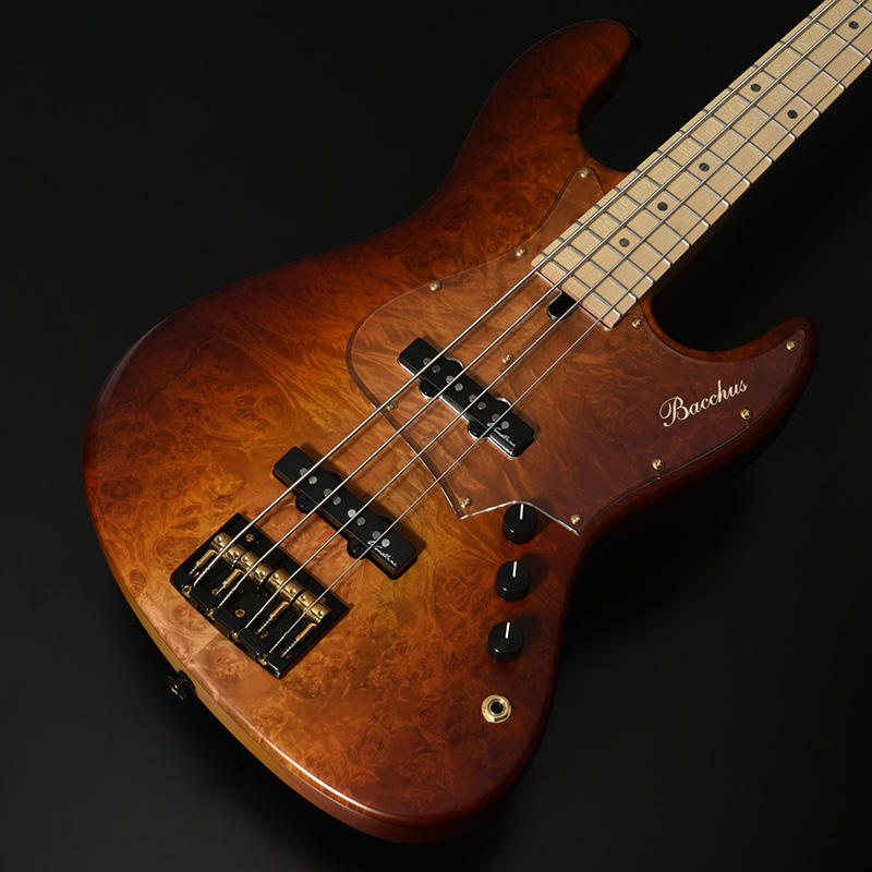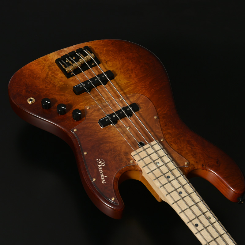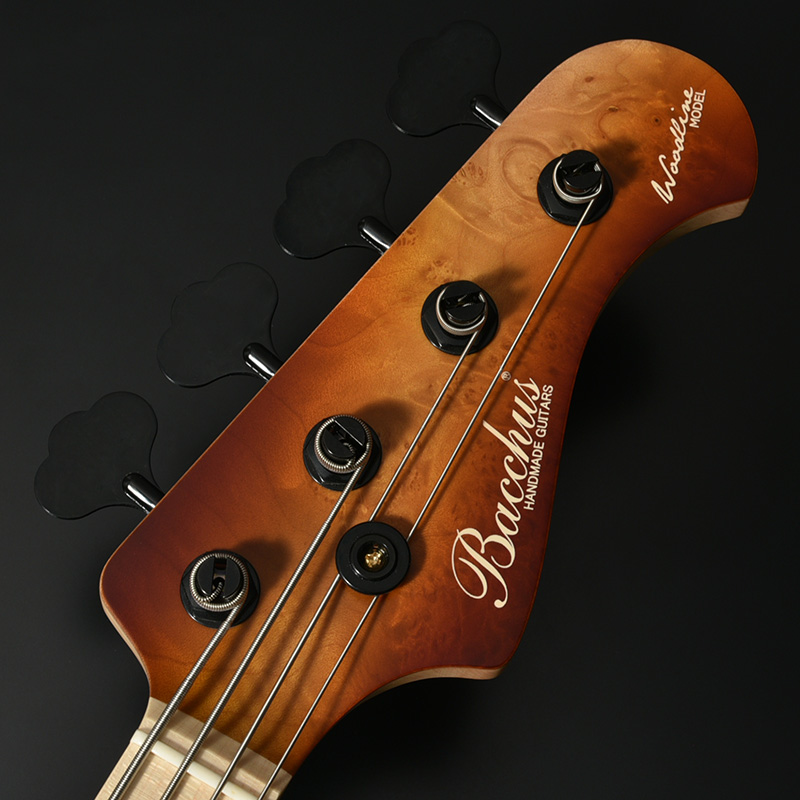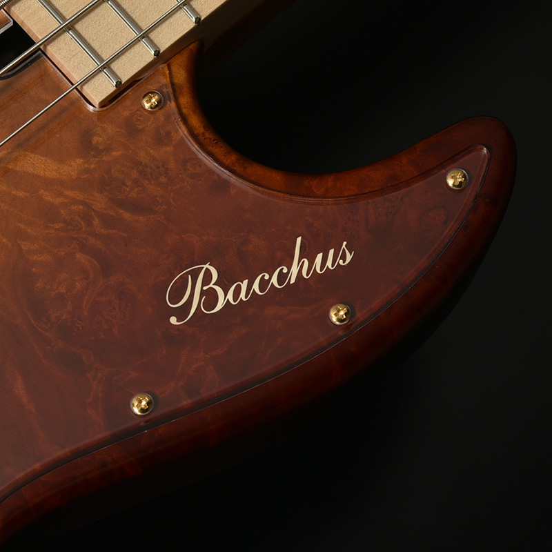 Bacchusの最上位機種”WOODLINE”モデルをベースに、プレミアムコレクションにふさわしいカスタマイズを施した一本。「バール (Burl)」とは、樹木が生育する過程で幹の根元にできたコブの部分のことを指します。すべての木々に現れるわけではなく、その個性的な見た目と希少性から貴重な木材として取引されています。ボディ本体には近年その需要に対し数を減らしつつあるアッシュ材を採用しています。