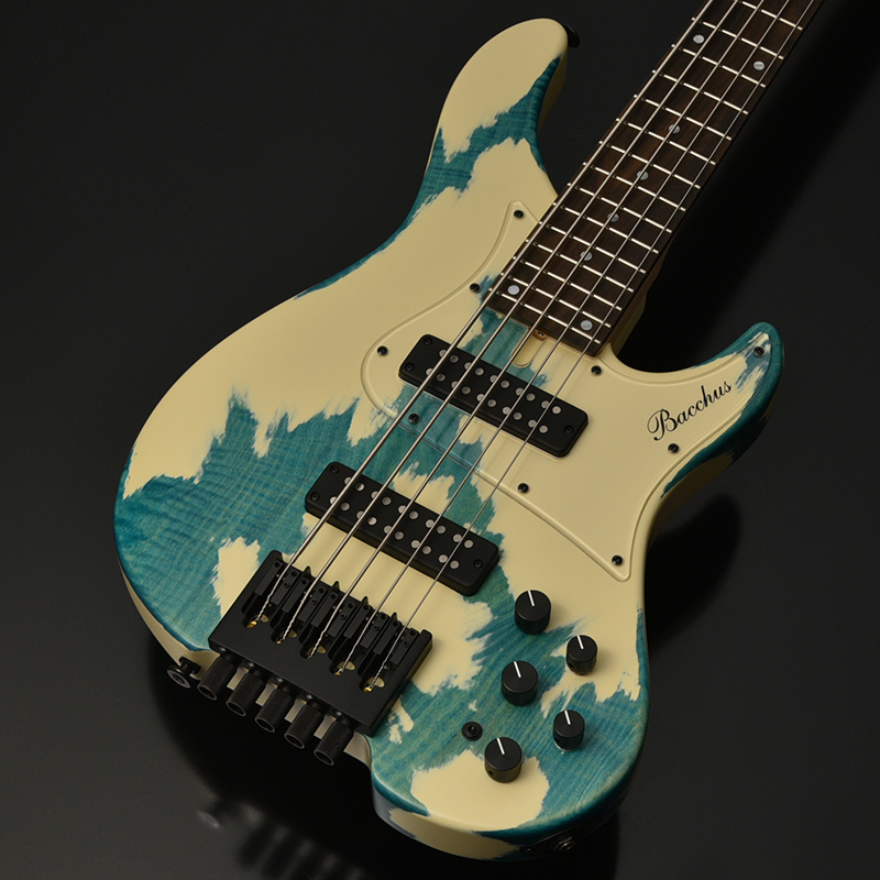 サウンドの要となる部分には、Bacchusオリジナルのハムバッキングタイプを二基マウント。アクティブサーキットとヘッドレス両方の持ち味を引き出す、抜群の相性の良さから選ばれました。ブリッジには、軽量かつ優れた安定性を誇るHipshot製ヘッドレスシステムを採用しています。